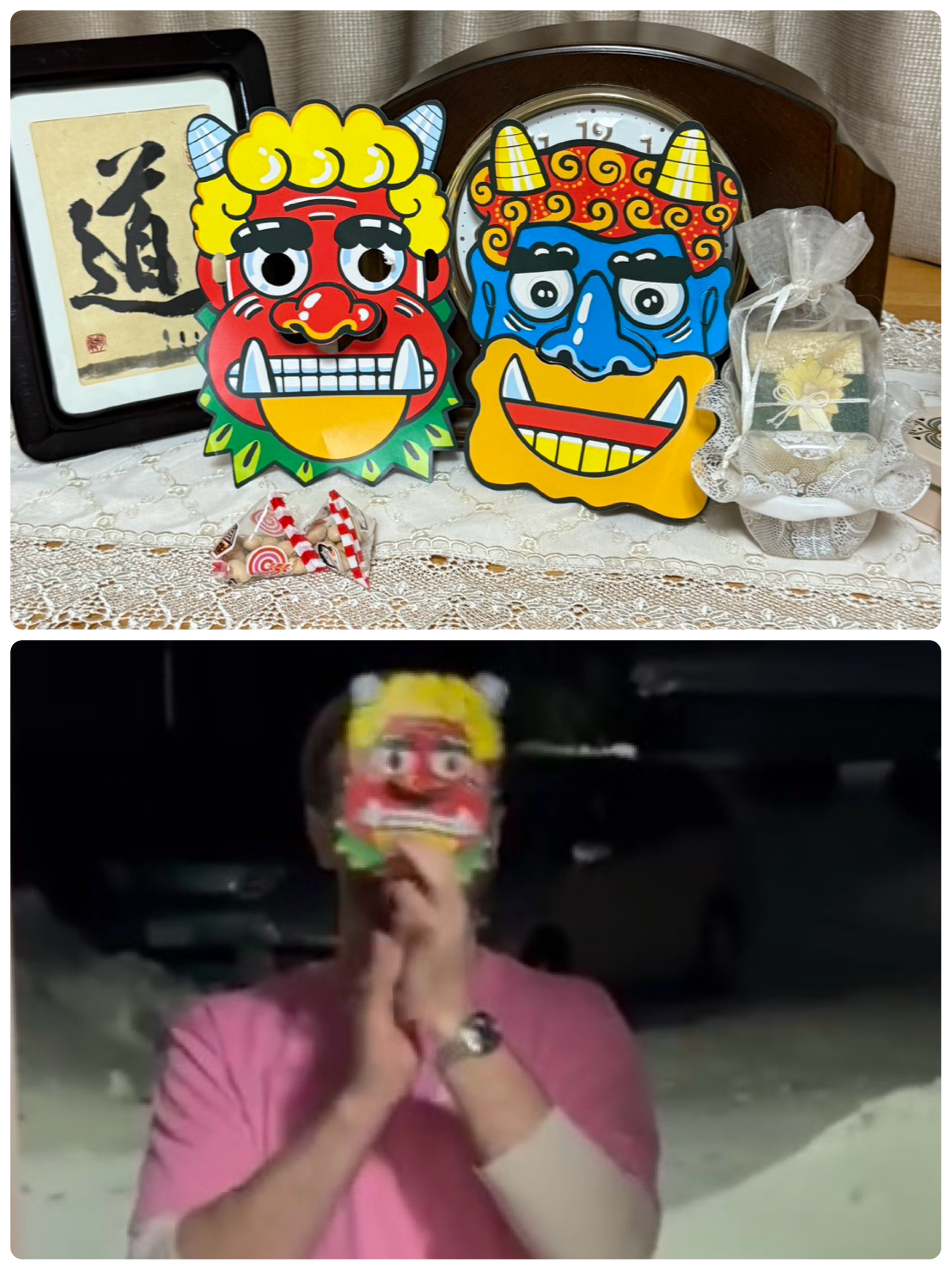 今夜は節分でしたから、皆んなで豆まきをして、ワイワイのお寿司パーティーでした。最後のデザートは、Chris💓Sinaryと書いた手作りケーキを喜んでくれました。