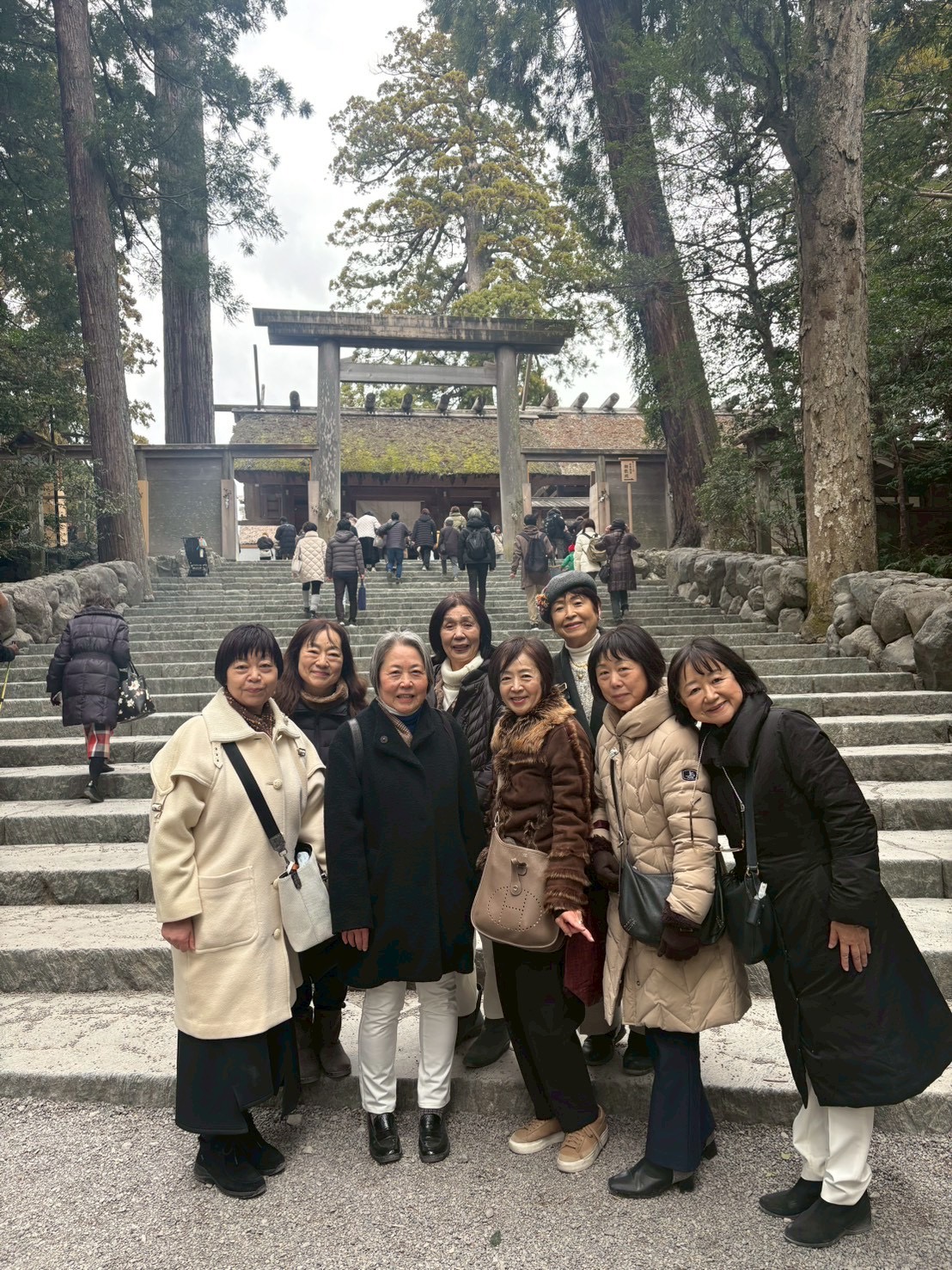 初日は伊勢グルメの手こね寿司でランチ、二見浦の夫婦岩、女の願いの石神さん、ミキモト真珠島では海女さんのデモンストレーションに感激し、翌日は伊勢神宮で神楽の舞を観ました。おかげ横丁では赤福ぜんざいでホッと一息温まり、道開きの猿田彦神社でも新年にふさわしくそれぞれの想いを願掛けして参りました。